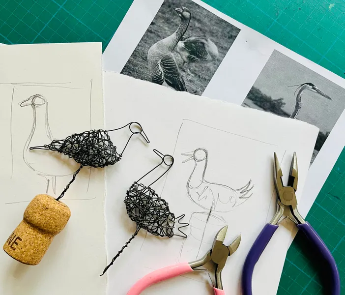 Next promoted date: Saturday 10th October 2026 ( Art in the Barn) Join us in our thatched long barn in the heart of the Meon Valley to create beautiful wire birds and animals. This full day workshop will be run by Liz Wellby, who will guide you through a number of stages, enabling you to create your own beautiful tiny wire sculptures. Your initial ideas will be sketched, before you explore fine and flexible heat treated wire. It is an expressive material and surprisingly easy to handle, cut and manipulate with basic hand tools; it's like drawing in the air. You will create several wire sculptures both on bases and free standing, with a particular focus on birds, dogs and sheep with strong, angular profiles - breeds with more rounded features can be problematic. Your skills will develop throughout the day, enabling you to create more challenging pieces as the day progresses. You might like to print off several A6 images, of birds, dogs and sheep in profile, but you will be provided with several suitable images to work from. This workshop is suitable for beginners and is designed for a maximum of 12 people. About the tutor Liz Wellby is a versatile artist, teacher and maker, with a particular interest in sculpture and printmaking. Follow the completion of a Fine Arts degree at Loughborough University and subsequent post graduate studies, she returned to Derbyshire, where for over 30 years she has lived and worked. Liz now lives in a small village on the edge of the Peak District, working from her home studio - The Slipper Studio. You may wish to extend your stay in the area and book one of our Shepherds Huts at the side of our fishing lakes or alternatively, we have a glamping site with traditional Mongolian Yurts, each with wood burning stoves. All equipment and materials will be provided; just bring your lunch. Please contact Alison Butler if you have any further questions or wish to book a place.